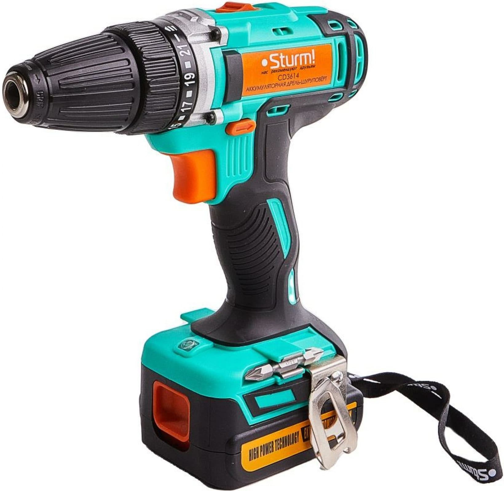 Sturm! CD3614 — компактная и удобная в работе дрель-шуруповёрт для завинчивания крепежей и сверления в стандартных бытовых материалах. Оснащена съёмным литий-ионным аккумулятором на 14 В, обеспечивающим до 1500 об/мин на второй скорости. Крутящий момент достигает 28 Н·м, что позволяет уверенно работать с шурупами диаметром до 6 мм. Вес всего 1,04 кг облегчает длительное удержание, а быстрозажимной патрон упрощает замену оснастки.