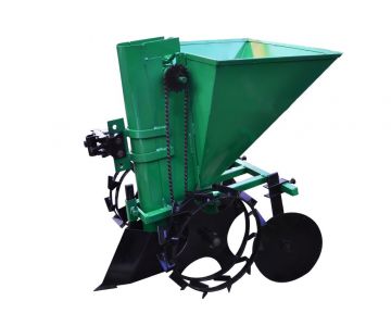 Картофелесажалка состоит из емкости для посадочного материала, цепного или ленточного транспортера, сошника для формирования борозды и окучников для её засыпки. При выборе картофелесажалки стоит обратить внимание на объем бункера – чем он больше, тем реже потребуется загружать материал, однако это уменьшает маневренность устройства. Также доступны модели с дополнительным бункером для удобрений. Выбирайте между однорядными и двухрядными моделями, исходя из потребностей вашего участка.